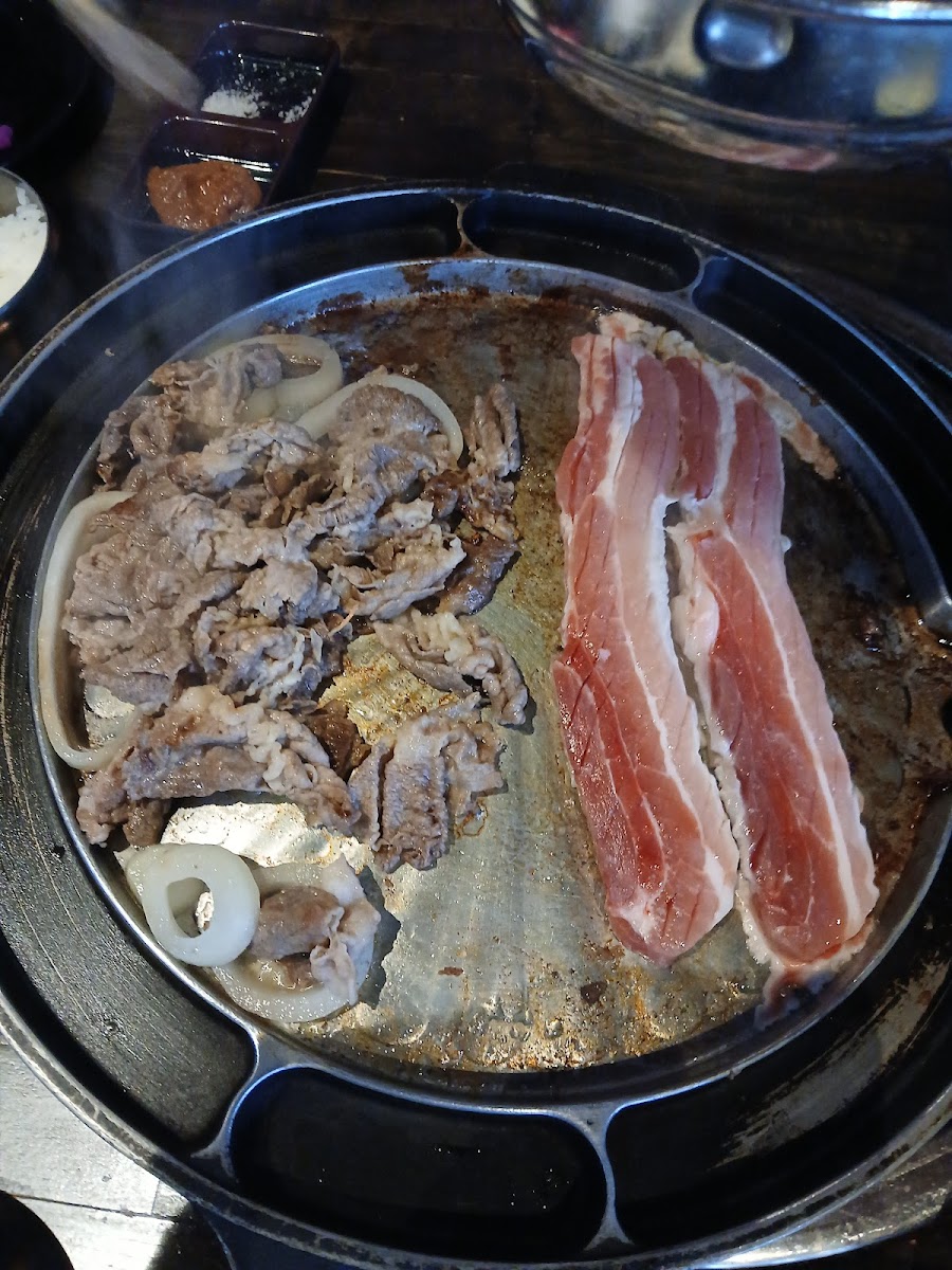 The menu leans heavily into variety. You’ll find classic beef options like brisket, bulgogi, and marinated short ribs alongside pork belly, spicy chicken, and seafood choices. Each protein arrives well-trimmed and evenly sliced, which isn’t accidental. Restaurants focused on quality sourcing often follow USDA beef grading standards, which emphasize marbling and texture for flavor. That attention to detail is noticeable when meat hits the grill and cooks evenly without excess flare-ups. Side dishes, or banchan, rotate frequently and include staples like kimchi, pickled radish, and seasoned bean sprouts, all meant to balance the richness of the barbecue.